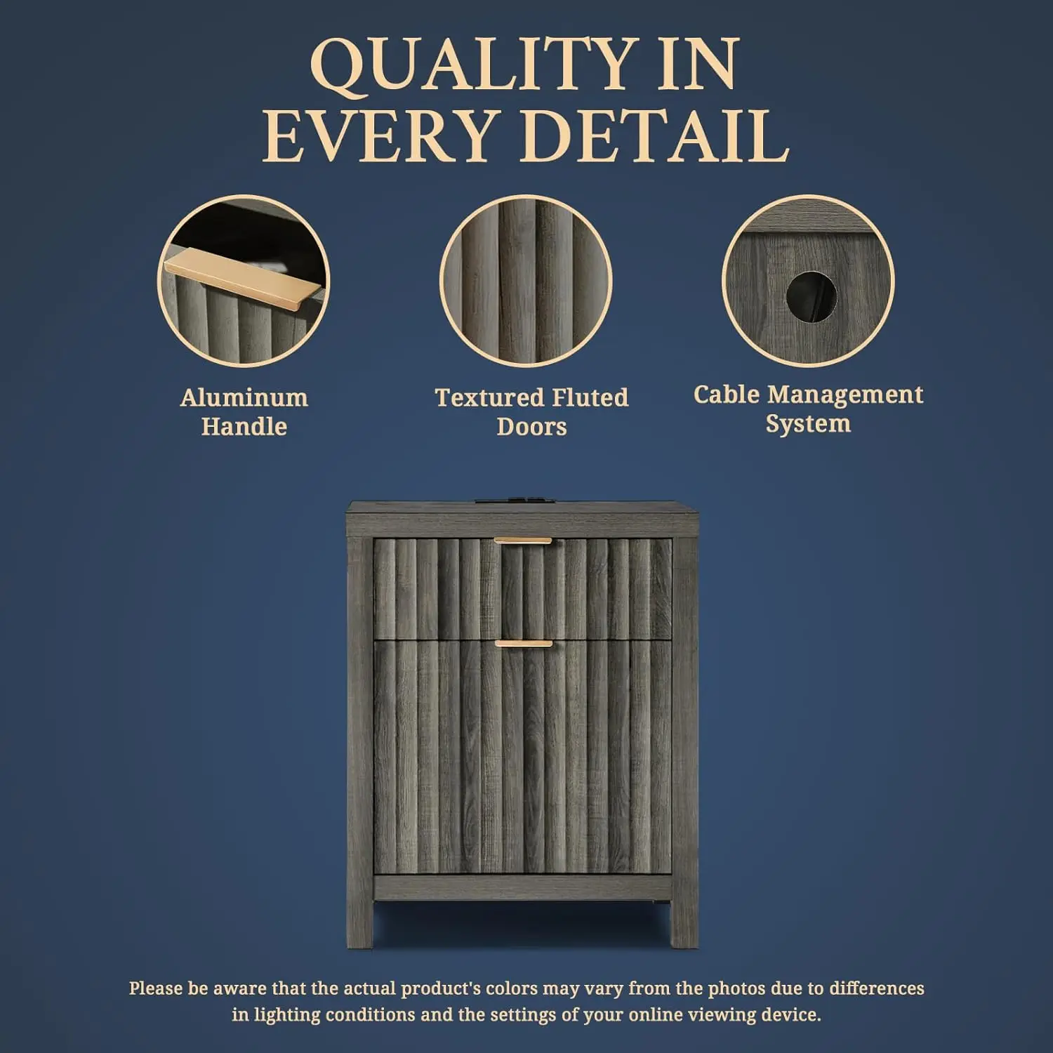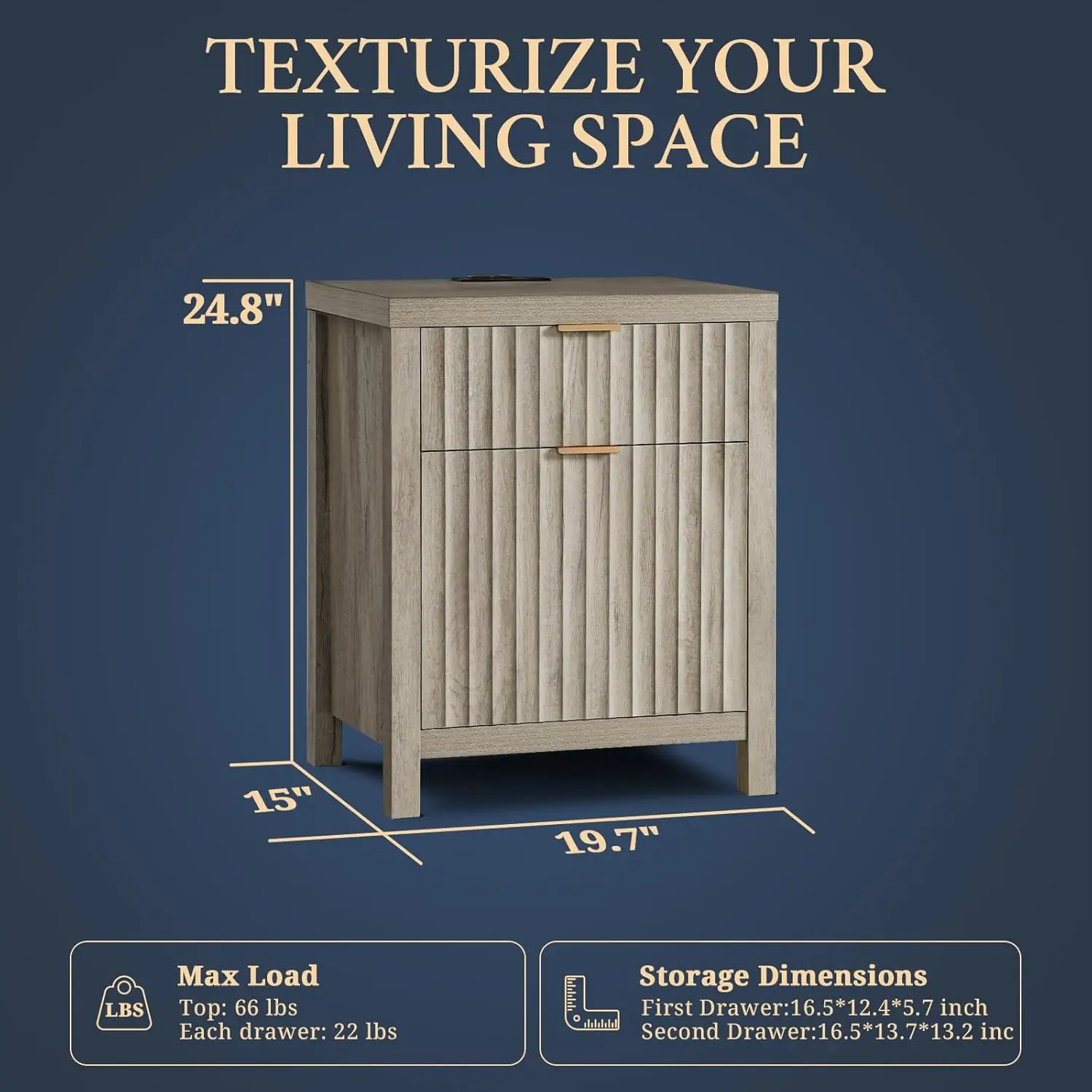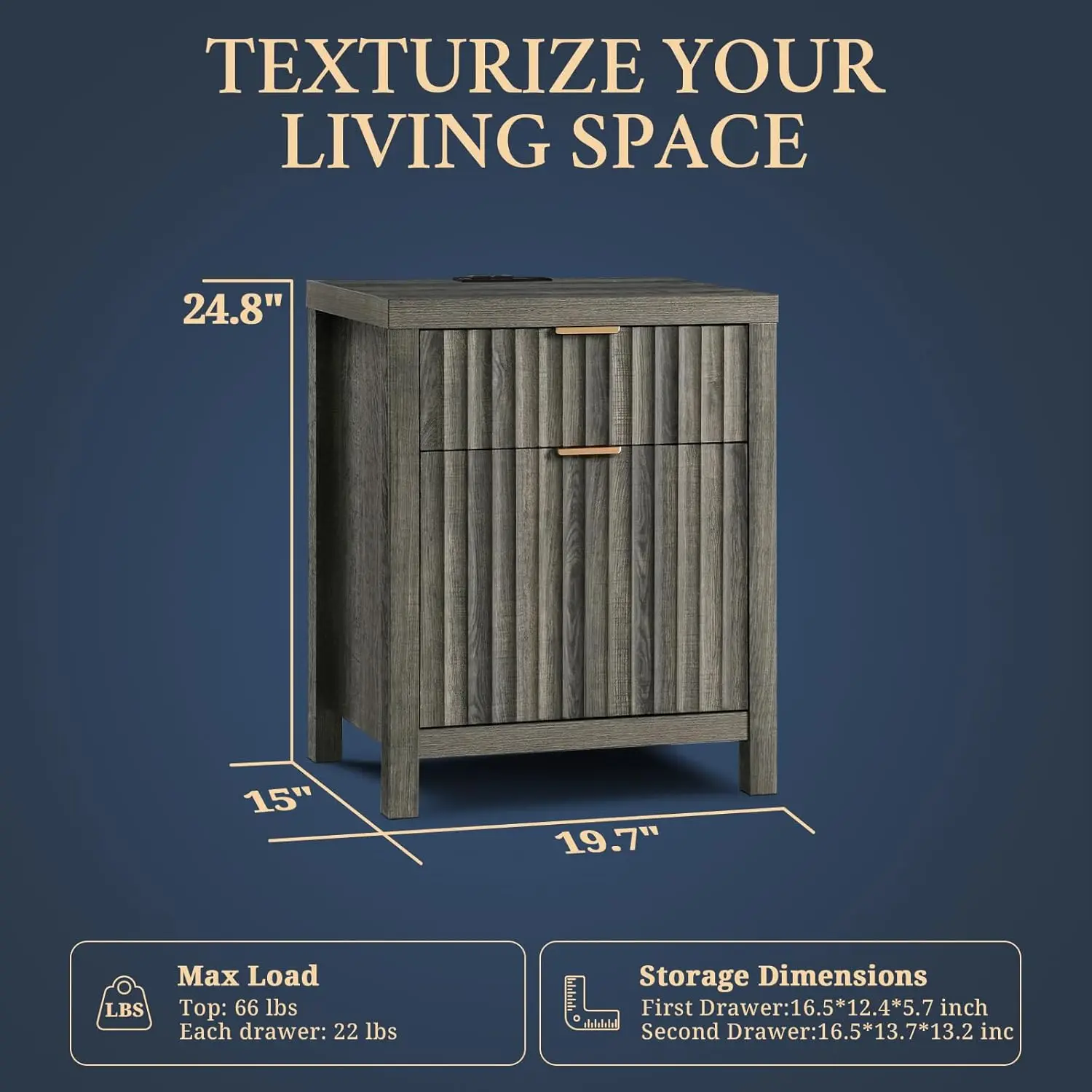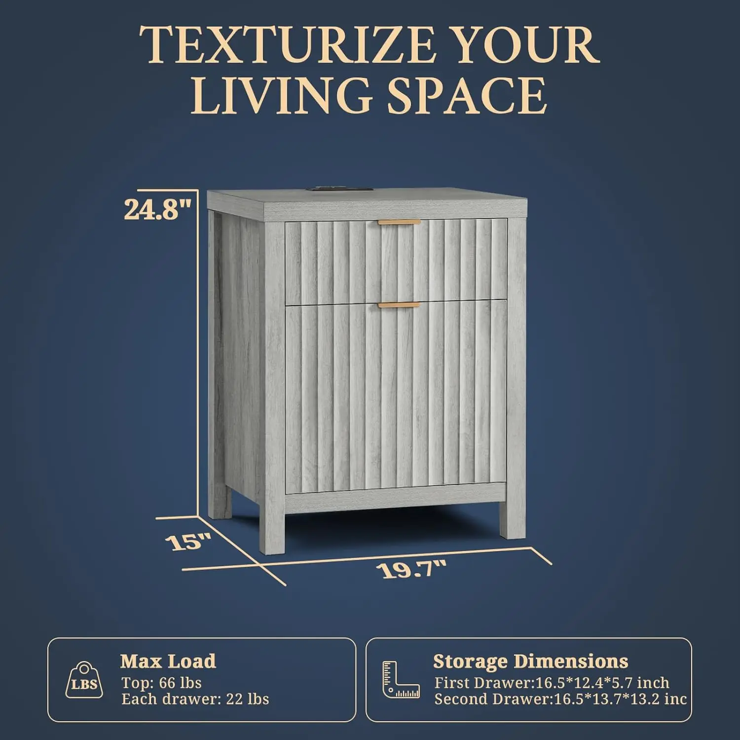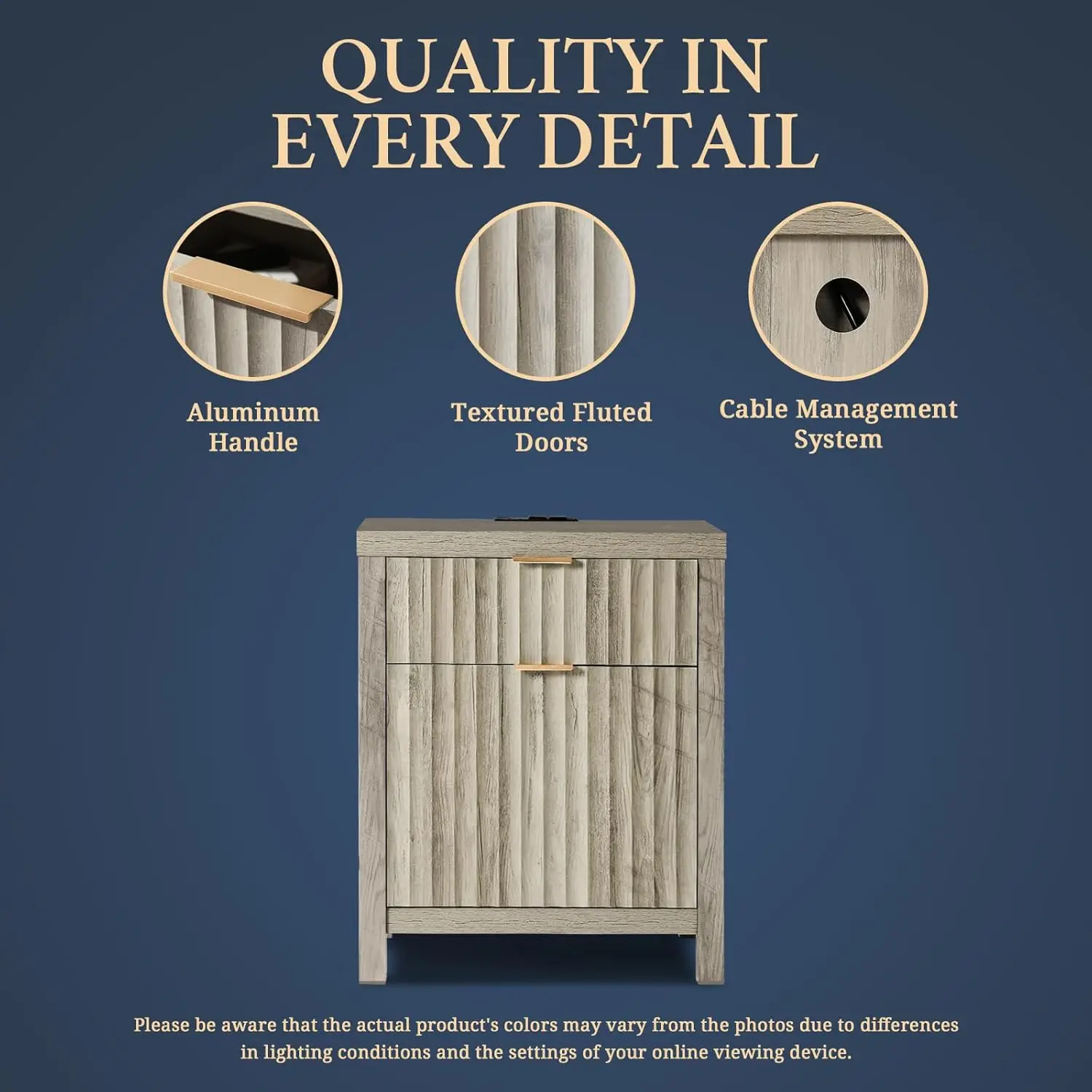 - Natural Elegance Meets Fashion: Drawing from the fluid beauty of nature, the Wave Panel design captures the gentle yet powerful rhythm of natural elements. Complemented by durable rose gold aluminum handles, this nightstand combines nature's grace and lasting strength, offering an enduring and exquisite addition to any space