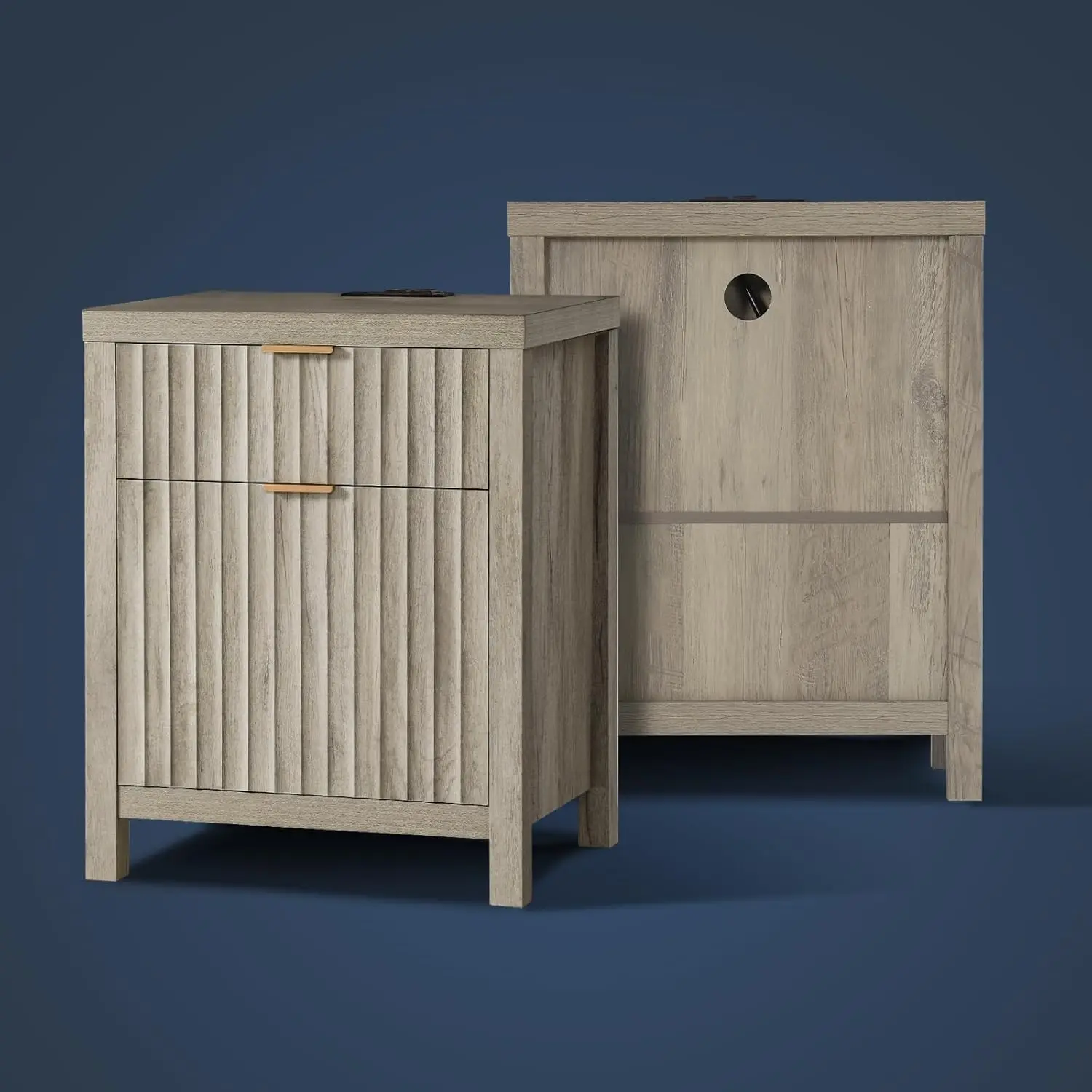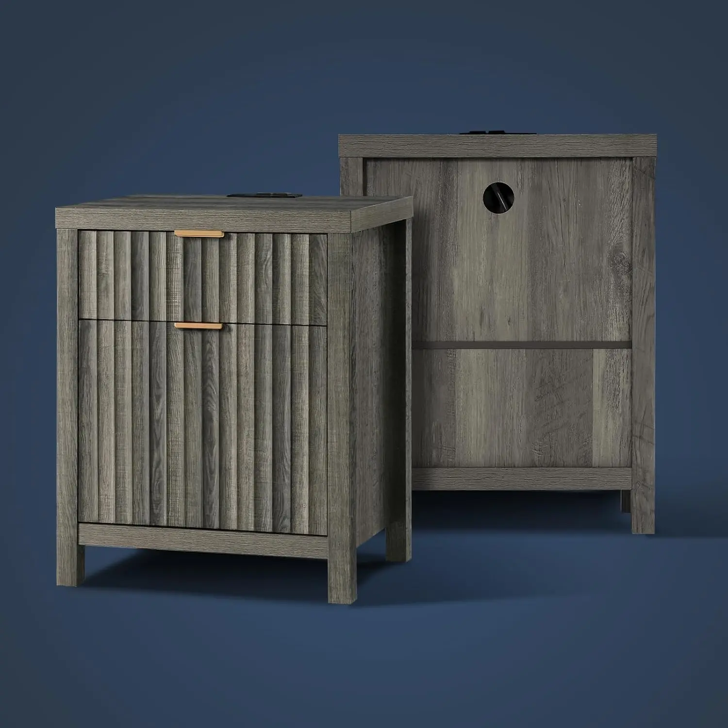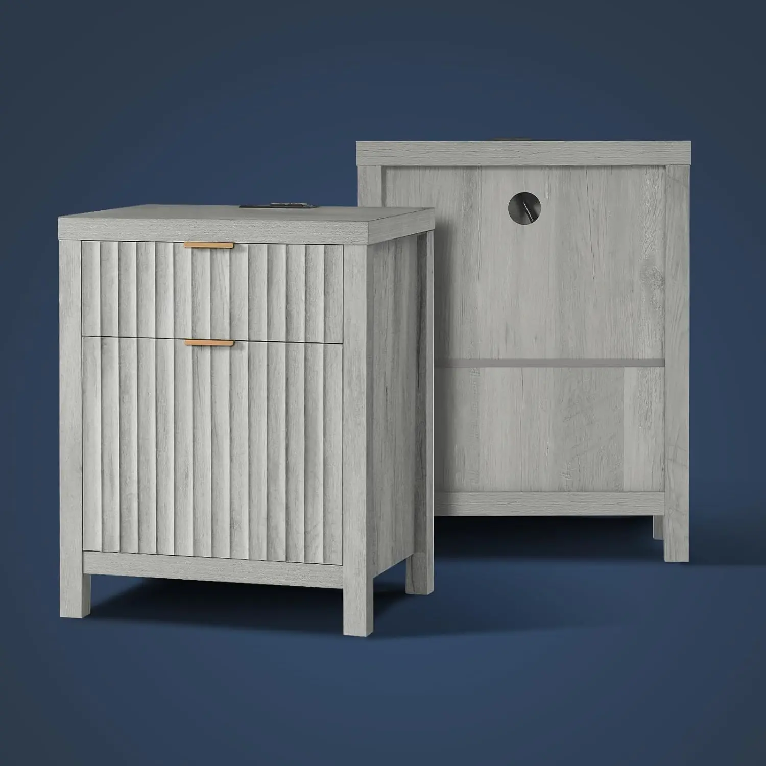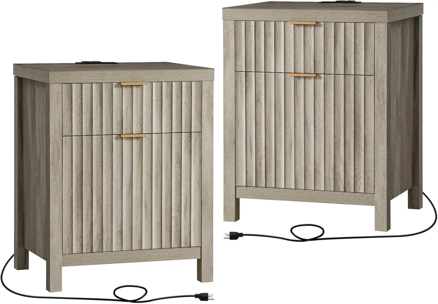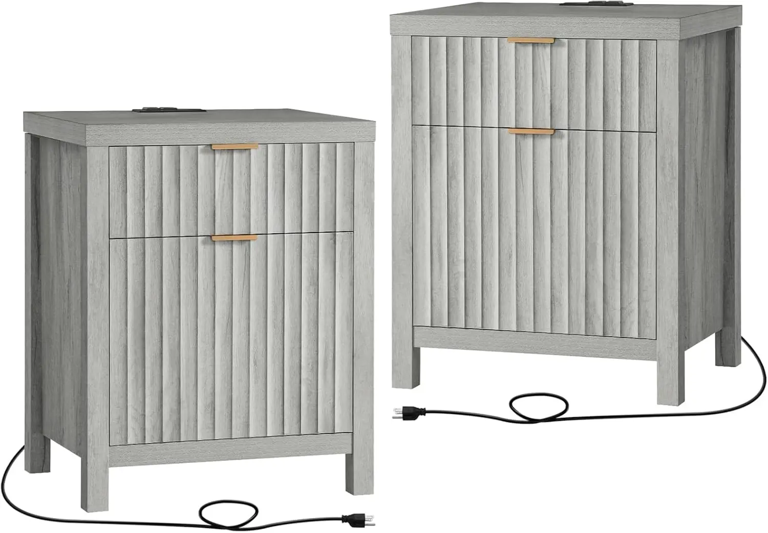 2 Drawer Nightstand, End Table with Charging Station, Night Stand with Fluted Panel, Farmhouse Sofa/Bed Side Table