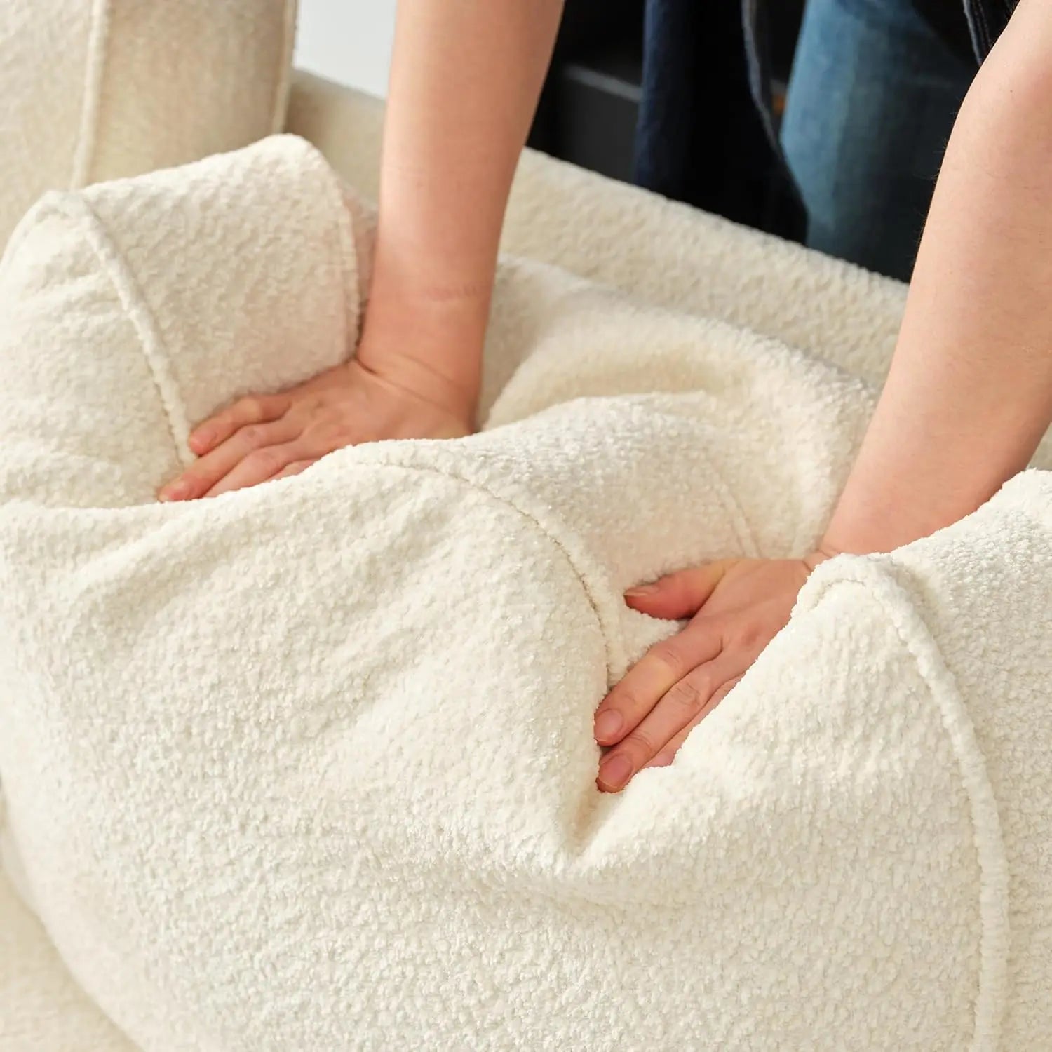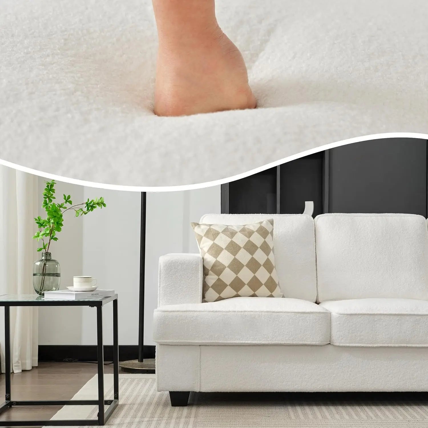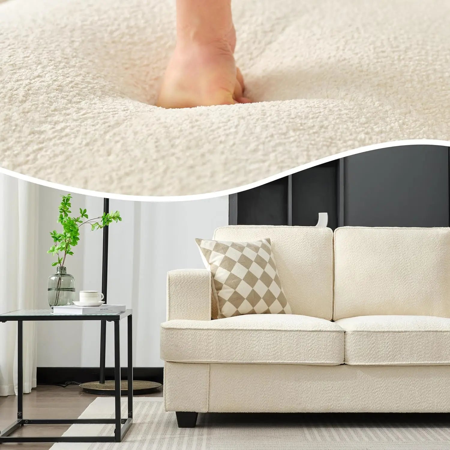 Modern Minimalist Extra Deep Seat Sofa with Teddy Velvet Upholstery – Ergonomic Design, Easy Assembly, 84" W Living Room Couch