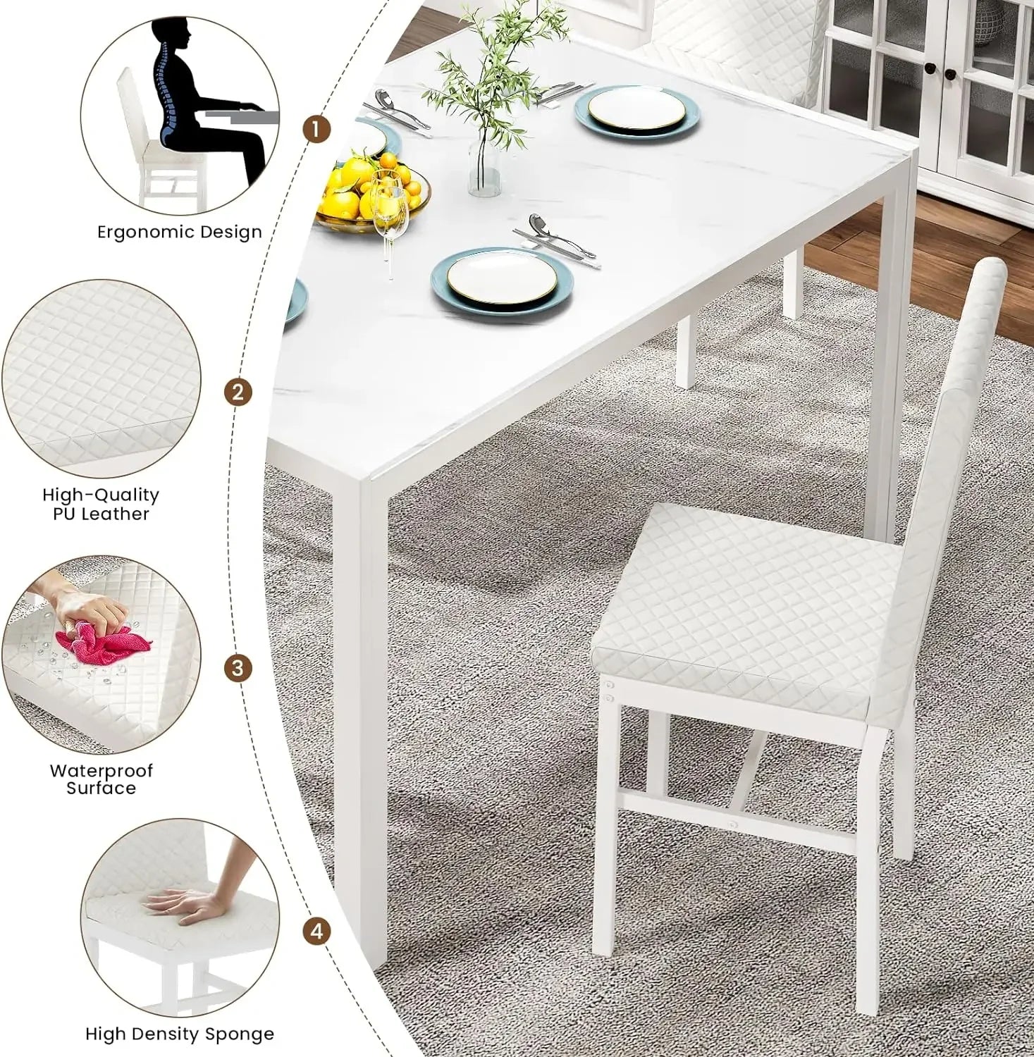 - Modern Minimalist Style: Featuring a sleek white marble vein design, this set complements modern and minimalist aesthetics. The high-density sponge cushions offer a comfortable seating experience.