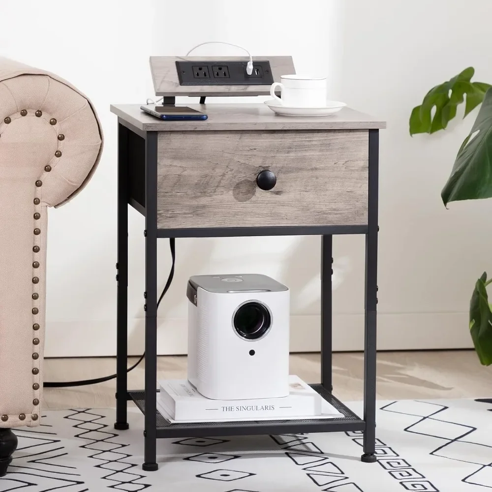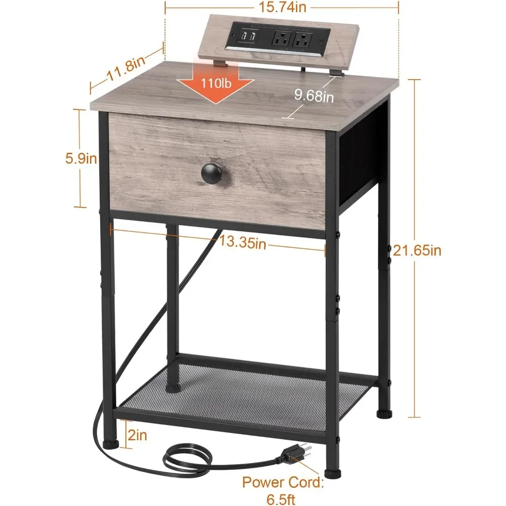 - [Nightstands with Charging Station Set of 2] The 2 set sofa end tables featured with 2 AC outlets and 2 USB ports. Easily charge your phone, Mac, etc. The nightstands with charging station have 6.5ft power cord can charge 4 electronic devices at the same time, everything is within your arm's reach, no more looking around