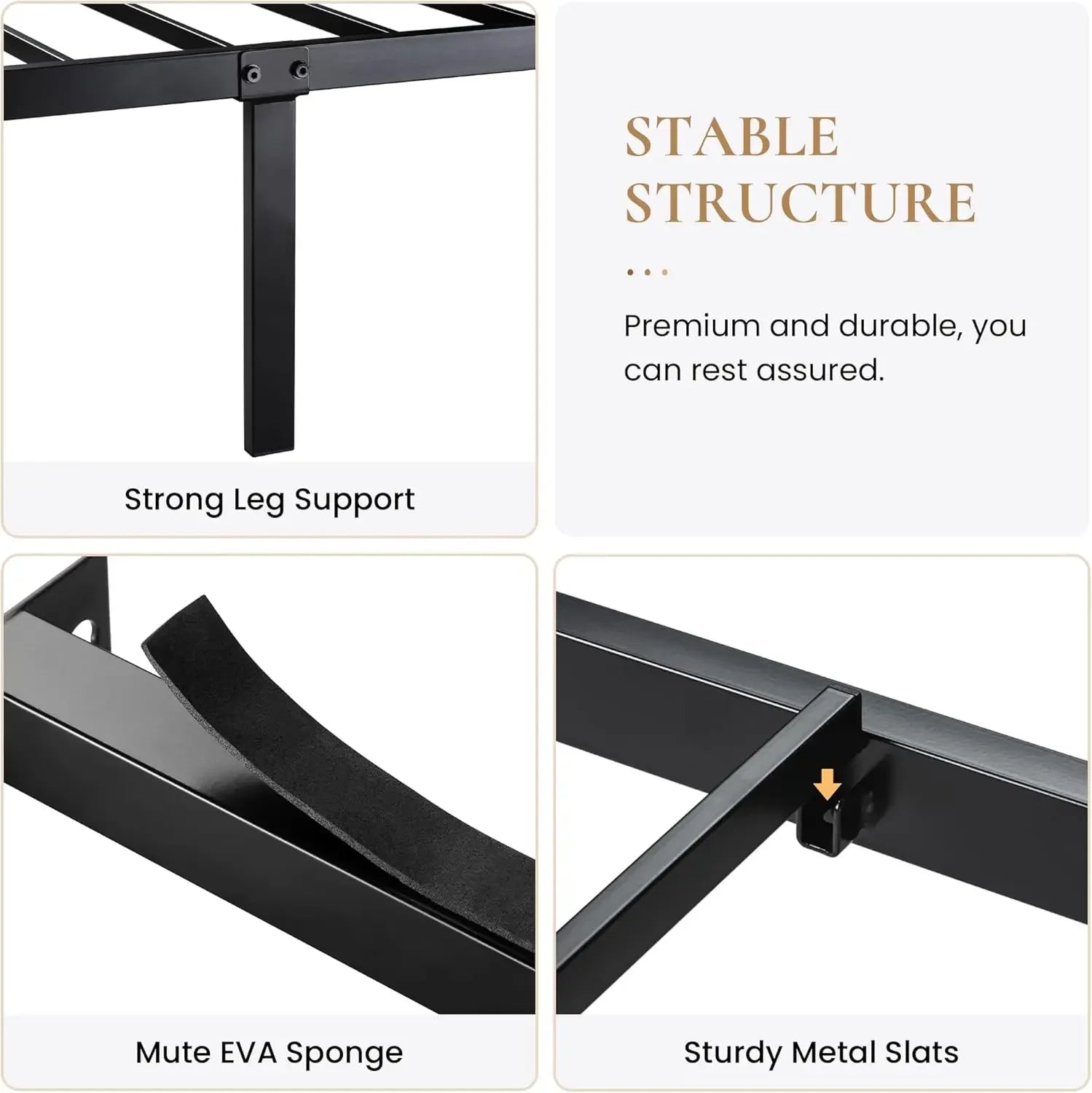 Sturdy Construction: Built with a robust metal frame and carefully selected solid wood panels, this bed frame is designed for longevity and stability, supporting up to 900 pounds.